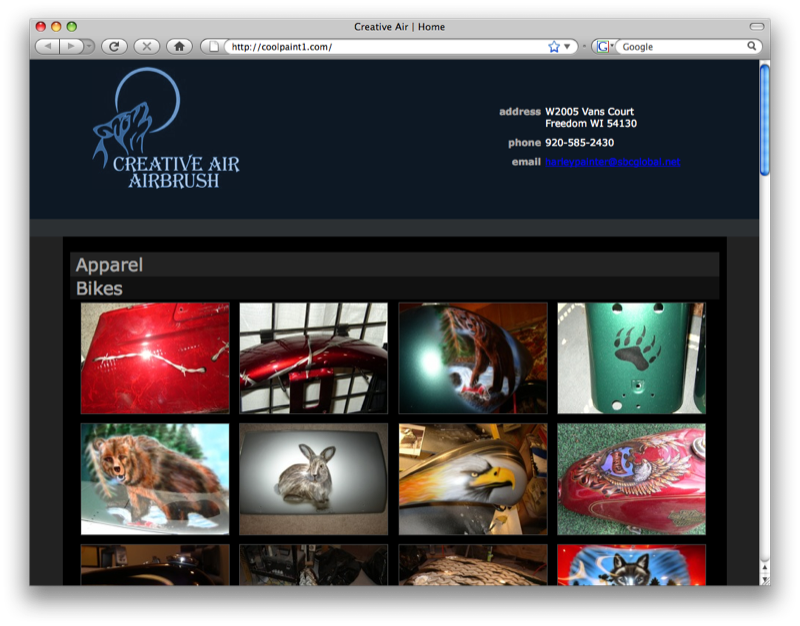 • provide a simple web presence and image gallery for a small artistic business in Oshkosh, WI