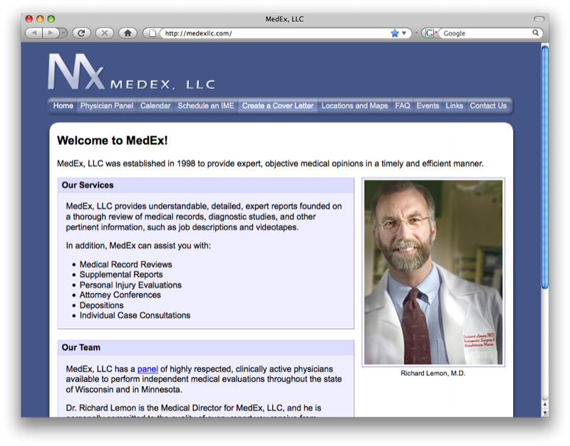 • produce a clean and simple site to inform patients and potential customers about MedEx and its physician panel